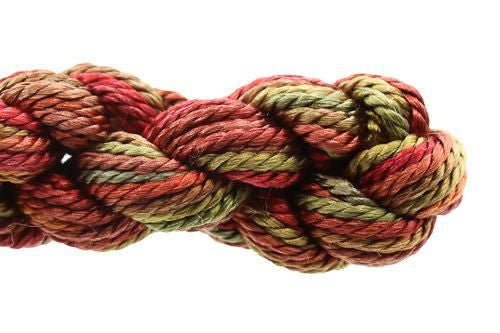 This is Princess Perle from Gloriana in color 077 Fall Foliage. A lush perled silk thread in a range of variegated colors.1 ply on 18 mesh.