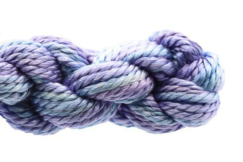 This is Princess Perle from Gloriana in color 085 Delphinium. A lush perled silk thread in a range of variegated colors.1 ply on 18 mesh.