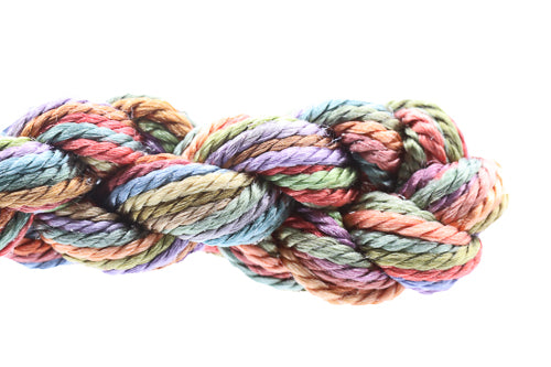 This is Princess Perle from Gloriana in color 112 Harvest Grape. A lush perled silk thread in a range of variegated colors.1 ply on 18 mesh.