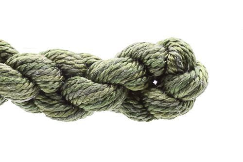 This is Princess Perle from Gloriana in color 116 Olive Grove. A lush perled silk thread in a range of variegated colors.1 ply on 18 mesh.