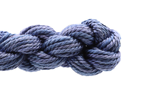 This is Princess Perle from Gloriana in color 118 Twilight Blue. A lush perled silk thread in a range of variegated colors.1 ply on 18 mesh.