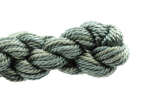 This is Princess Perle from Gloriana in color 163 Evergreen. A lush perled silk thread in a range of variegated colors.1 ply on 18 mesh.