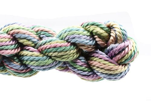 This is Princess Perle from Gloriana in color 180 Tulip Festival. A lush perled silk thread in a range of variegated colors.1 ply on 18 mesh.