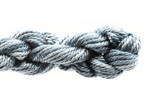 This is Princess Perle from Gloriana in color 250 Attic Blue. A lush perled silk thread in a range of variegated colors.1 ply on 18 mesh.