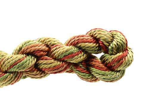 This is Princess Perle from Gloriana in color 252 Peruvian Lily. A lush perled silk thread in a range of variegated colors.1 ply on 18 mesh.