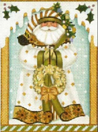 A beautiful hand painted needlepoint canvas from Melissa Shirley Designs. Golden Santa 924-JJ.