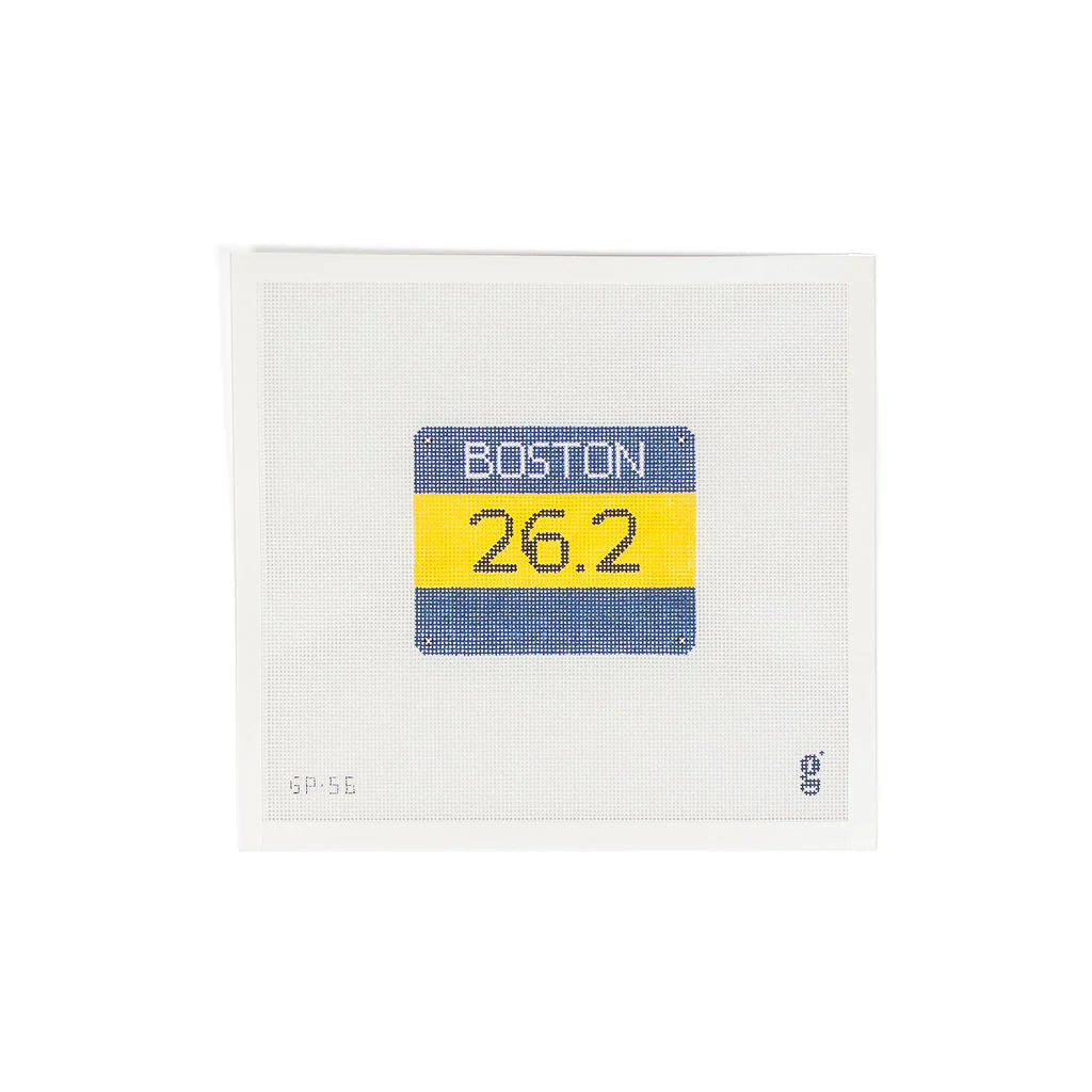 This hand painted needlepoint canvas from Goodpoint Needlepoint features a marathon bib from the Boston Marathon.