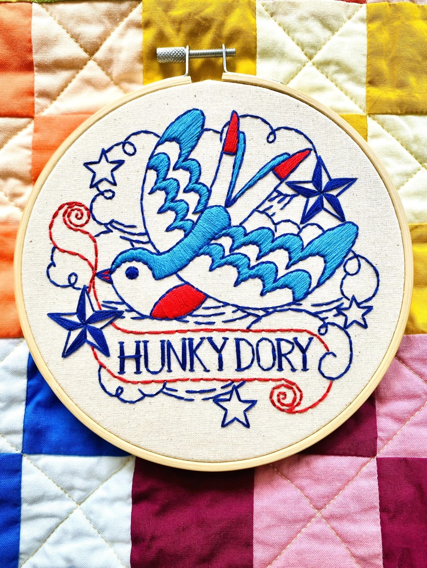 Hunky Dory! It's all good when it comes to this sailor tattoo inspired embroidery kit from Hook Line and Tinker. The kit includes just about everything you need - just add scissors!