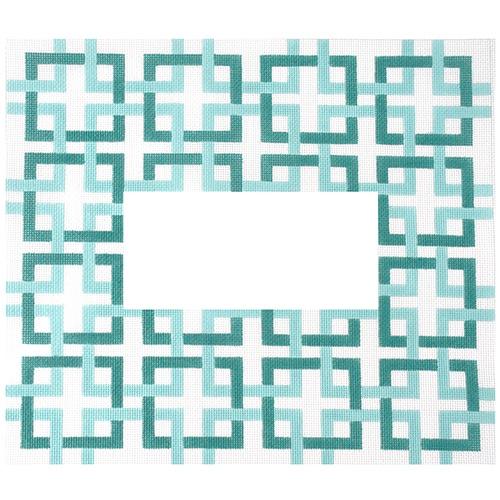A beautiful hand painted needlepoint design from Kate Dickerson Needlepoint Collections. Interlocking Squares with Monogram. Ask us about custom painting a letter(s) of your choice for an additional cost.