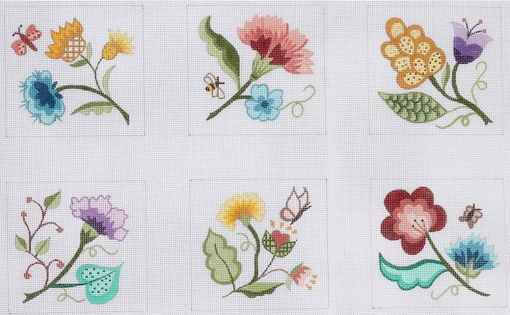Kate Dickerson Needlepoint Collections Jacobean Flowers Coasters Needlepoint Canvas