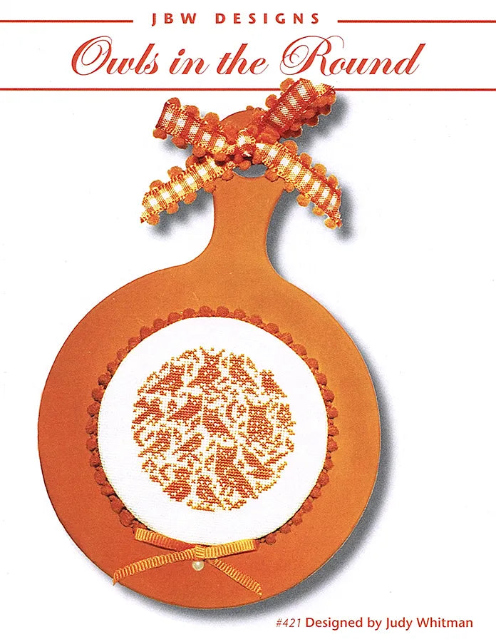This is a printed cross stitch pattern by JBW Designs. It features a design made up of different kind of owls. The example as stitched uses Weeks Dye Works cotton floss on 32 count Belfast linen in the color Fairy Dust.