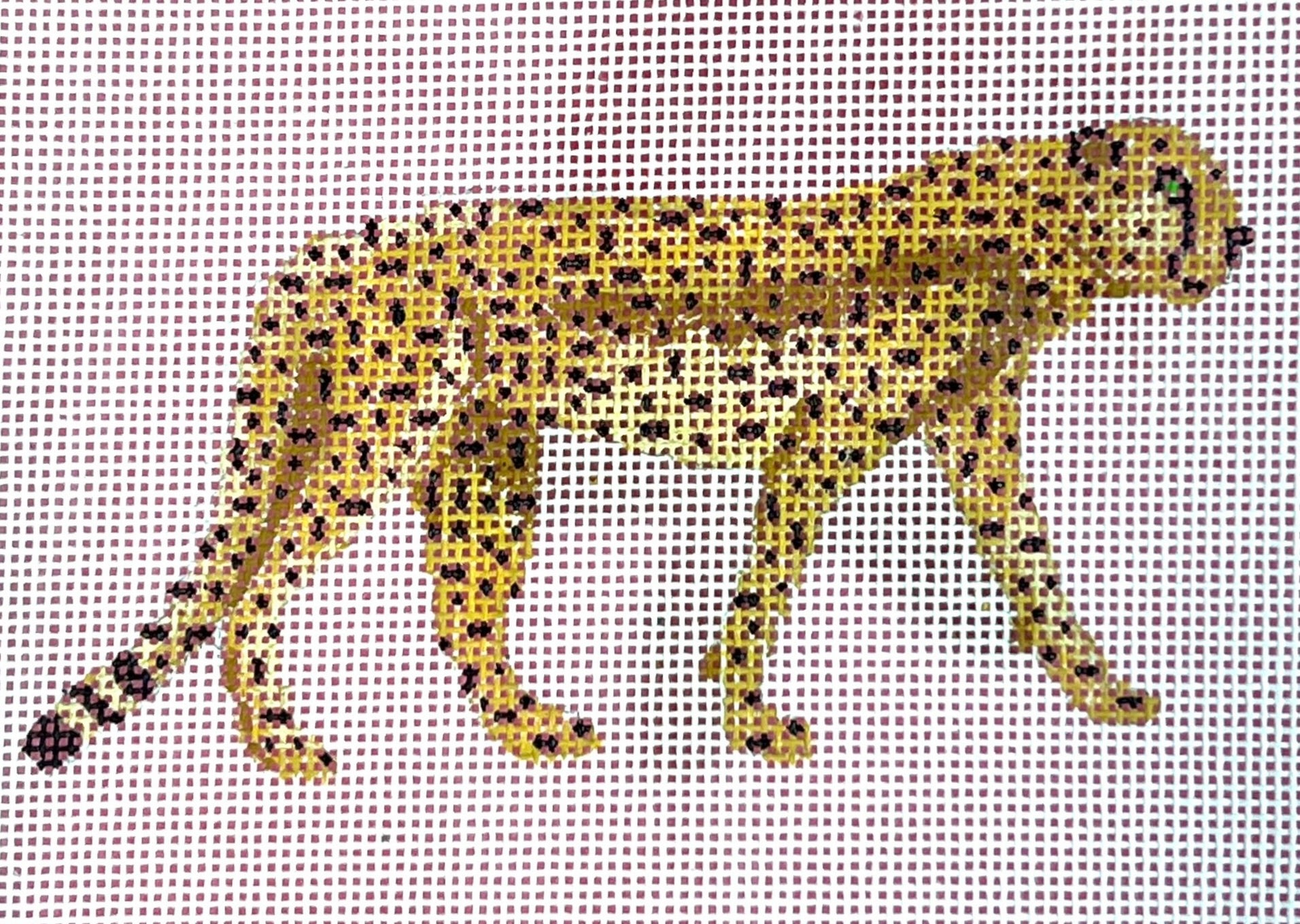 This hand painted needlepoint canvas from Jessica Tongel Designs features handsome cheetah.