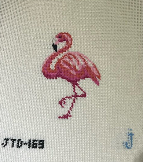 This hand painted needlepoint canvas from Jessica Tongel Designs features a petite pink flamingo.
