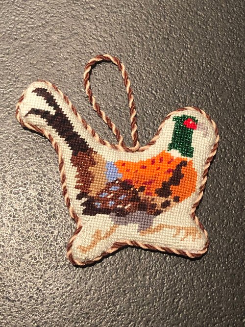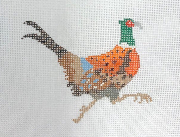 This hand painted needlepoint canvas from Jessica Tongel Designs features a handsome pheasant named Percy.