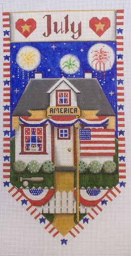 Rebecca Wood Designs July Cottage Banner Needlepoint Canvas