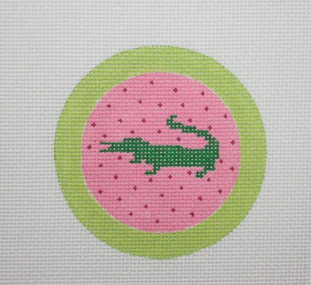 Kate Dickerson Needlepoint Collections Insert - Green Gator on Hot Pink with Lime Border Needlepoint Canvas - 3 Round