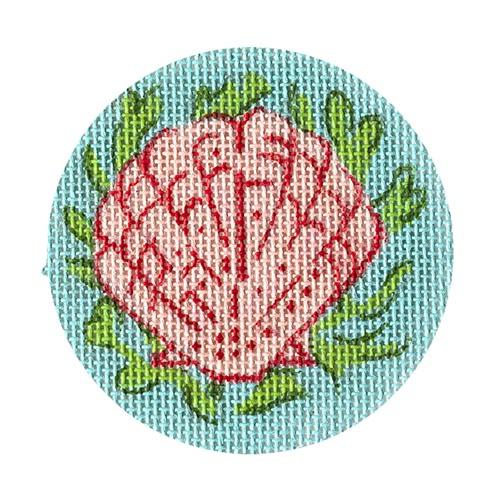 Kate Dickerson Needlepoint Collections Insert - Scallop & Seaweed on Soft Caribbean Needlepoint Canvas - 3 Round