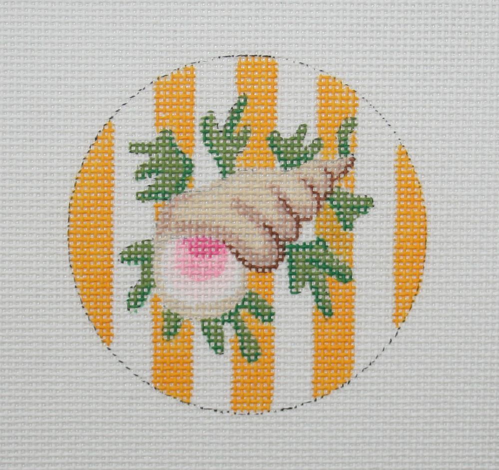 Kate Dickerson Needlepoint Collections Insert - Snail on Yellow Cabana Stripes Needlepoint Canvas - 3 Round