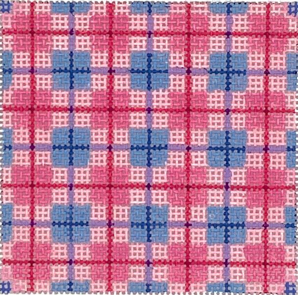 Kate Dickerson Needlepoint Collections Insert - Madras Plaid Pinks & Periwinkle Needlepoint Canvas - 3 Square