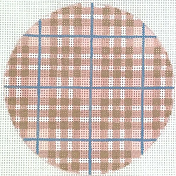 Kate Dickerson Needlepoint Collections Insert - Plaid Sandy Pink Tan & Light Blue Needlepoint Canvas - 4 Round