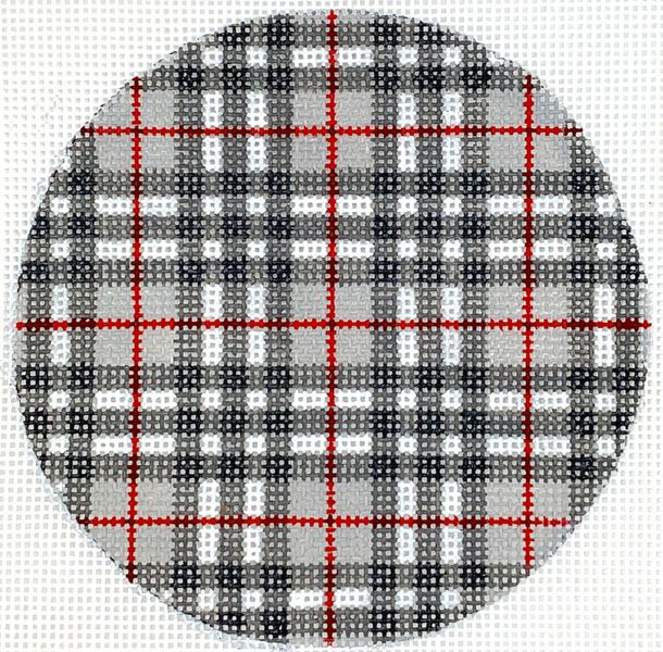 Kate Dickerson Needlepoint Collections Insert - Gentleman's Plaid - Grays Black & Red Needlepoint Canvas - 4 Round