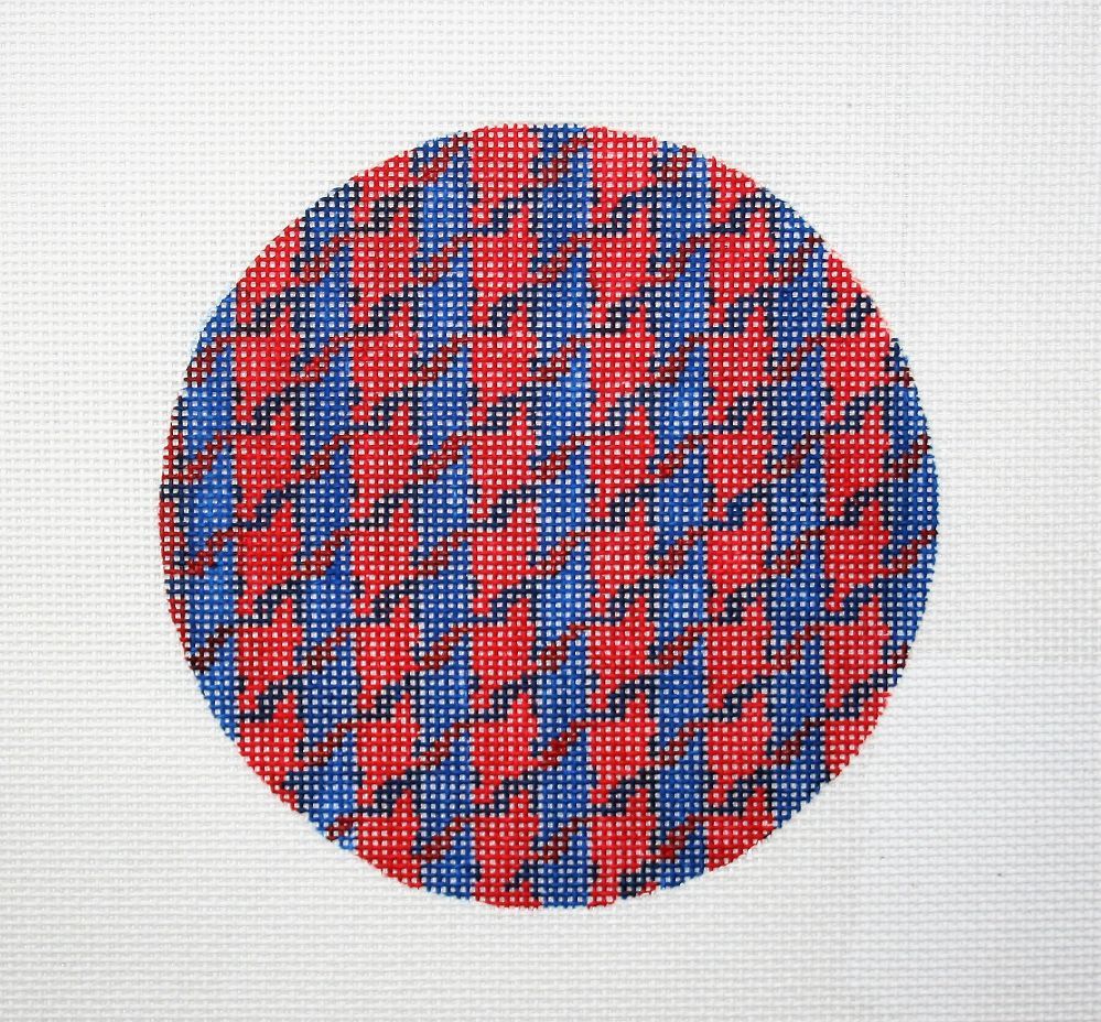 Kate Dickerson Needlepoint Collections Insert - Houndstooth - Marine Blue & Red Needlepoint Canvas - 4 Round