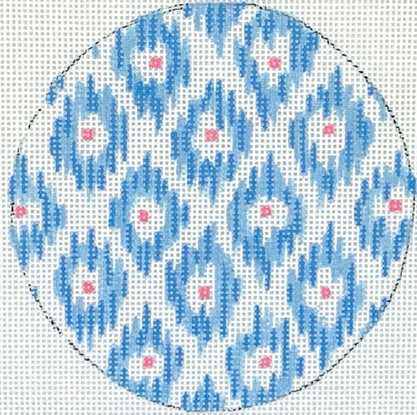 Kate Dickerson Needlepoint Collections Insert - Ikat - Soft Blues & Pink Needlepoint Canvas - 4 Round