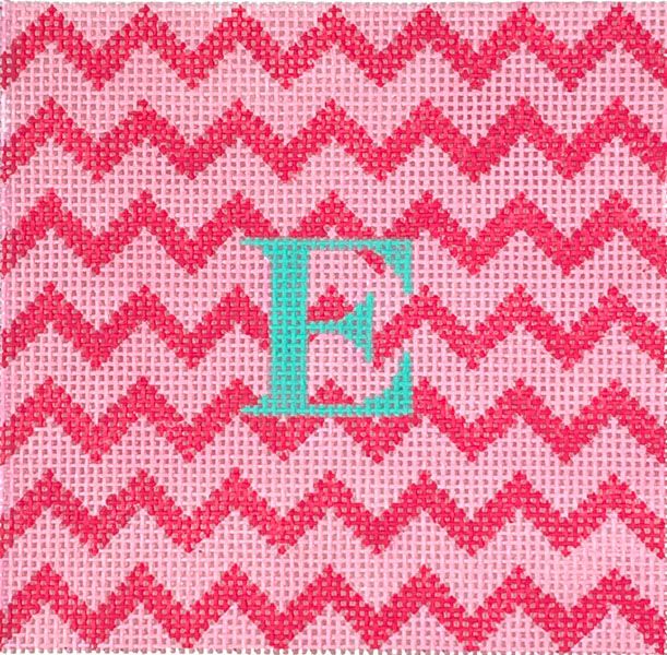 Kate Dickerson Needlepoint Collections Square Insert Zigzag Raspberry on Pink Needlepoint Canvas - 4 Square