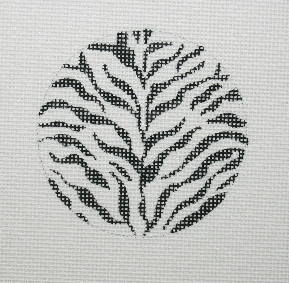 A beautiful hand painted needlepoint design from Kate Dickerson Needlepoint Collections. Bright Disk Letter – Black & White Zebra, Red Letter. Ask us about custom painting a letter(s) of your choice for an additional cost.