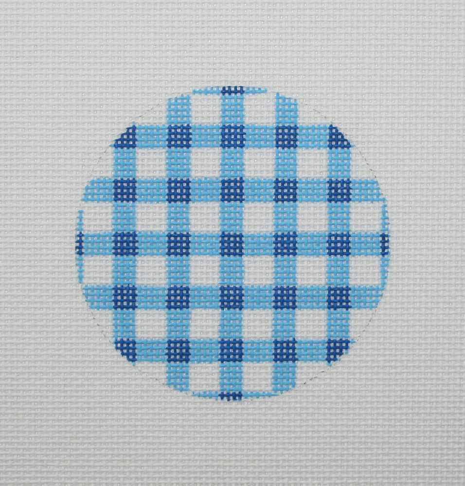 Kate Dickerson Needlepoint Collections Bright Disk Letter - Blues & White Gingham, Red Letter Needlepoint Canvas