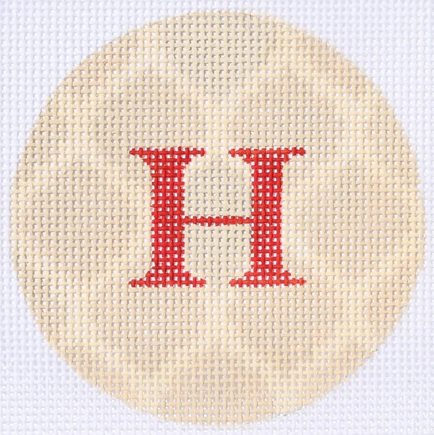 Kate Dickerson Needlepoint Collections Bright Disk Letter in Cream & Sand Quatrefoils Needlepoint Canvas