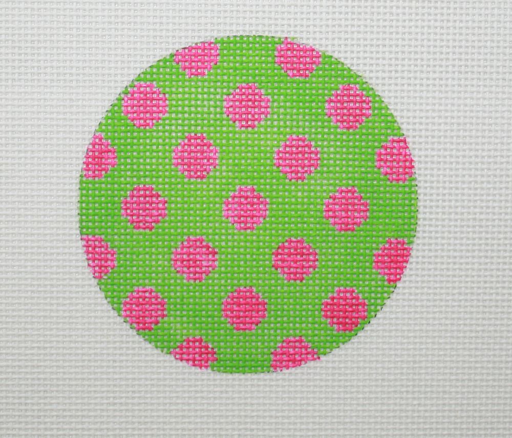 Kate Dickerson Needlepoint Collections Bright Disk Letter Kelly Green with Light Blue Dots Needlepoint Canvas