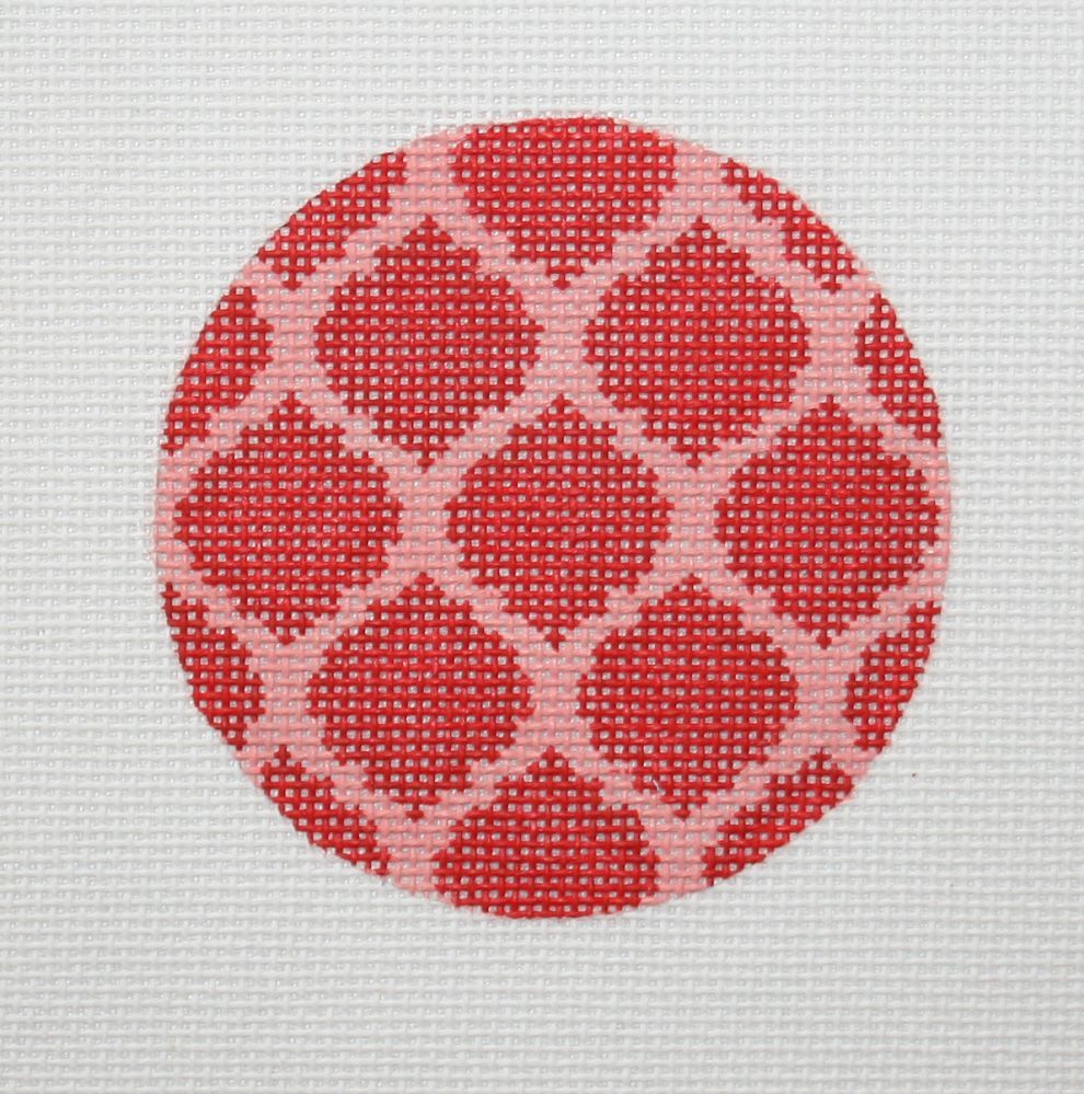 Kate Dickerson Needlepoint Collections Bright Disk Letter Reds Quatrefoil Damask Needlepoint Canvas