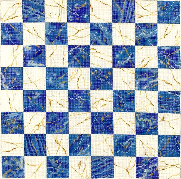 Kate Dickerson Needlepoint Collections Chess/Checkers Board Lapis Lazuli & Gold-Laced Crystal Quartz Needlepoint Canvas