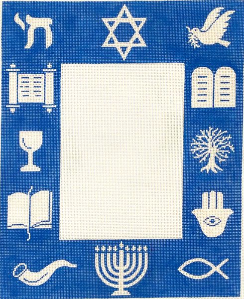 A beautiful hand painted needlepoint design from Kate Dickerson Needlepoint Collections. Frames.