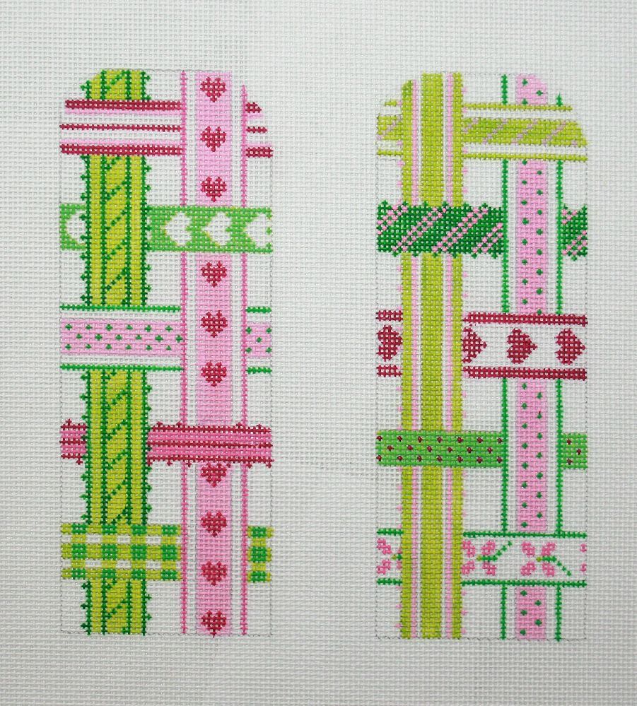 Kate Dickerson Needlepoint Collections Glasses Case - Woven Ribbons - Pinks & Greens (Half-Size) Needlepoint Canvas