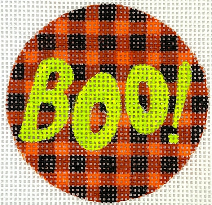 Kate Dickerson Needlepoint Collections Halloween Mini - "Boo!" on Orange & Black Gingham Needlepoint Canvas