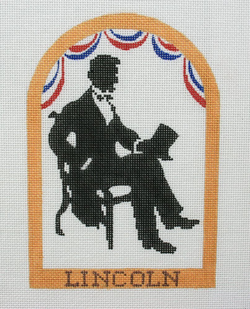 Kate Dickerson Needlepoint Collections Holiday Series Mini - "Abraham Lincoln" Silhouette with Red, White & Blue Bunting (February) Needlepoint Canvas