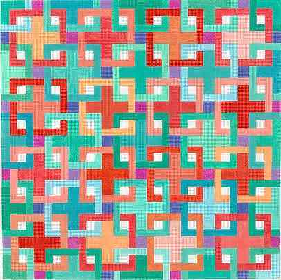 Kate Dickerson Needlepoint Collections Interlocking Squares Corals Turquoise and Violets Needlepoint Canvas