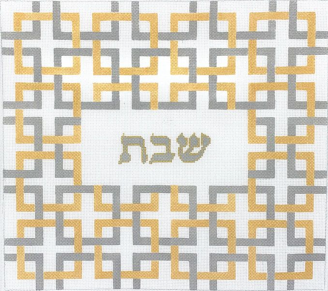 Kate Dickerson Needlepoint Collections Interlocking Squares with Shabat Silver And Gold Needlepoint Canvas