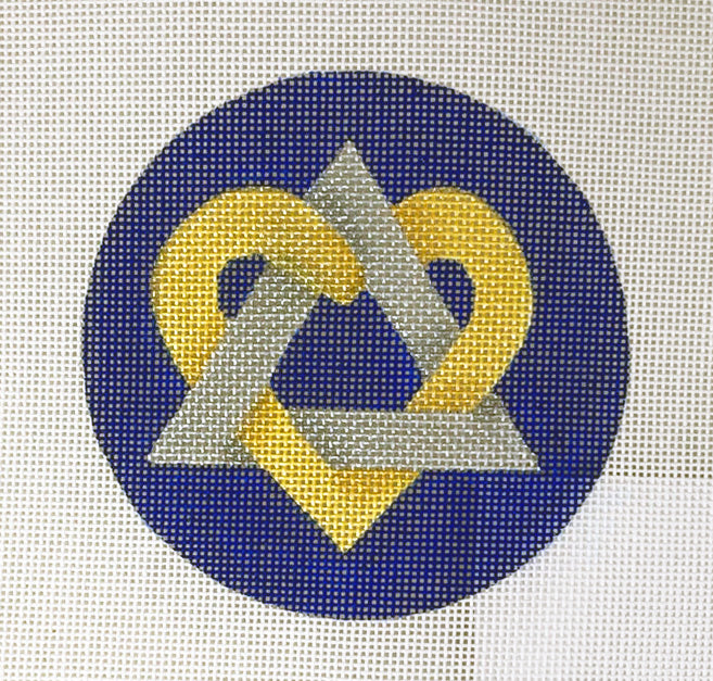 Kate Dickerson Needlepoint Collections Intertwined Heart/Star of David - Golds & Silvers on Deep Blue Needlepoint Canvas