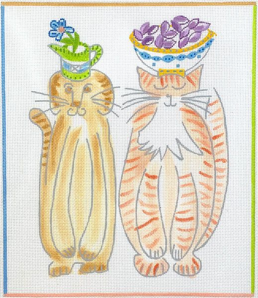 Kate Dickerson Needlepoint Collections Jilly Walsh - Dog with Watering Can & Cat with Bowl of Candy Needlepoint Canvas