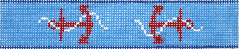 Kate Dickerson Needlepoint Collections Key Fob - Red & White Anchors on Cobalt Blue Needlepoint Canvas