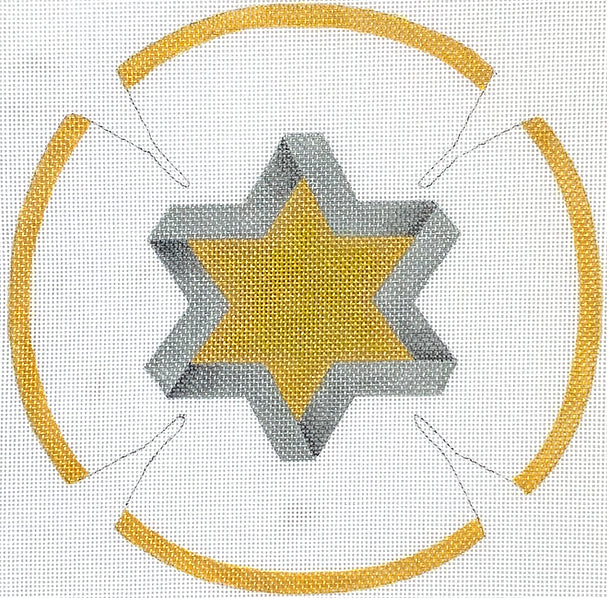 Kate Dickerson Needlepoint Collections Kippah - Star of David - Golds & Silvers on White Needlepoint Canvas