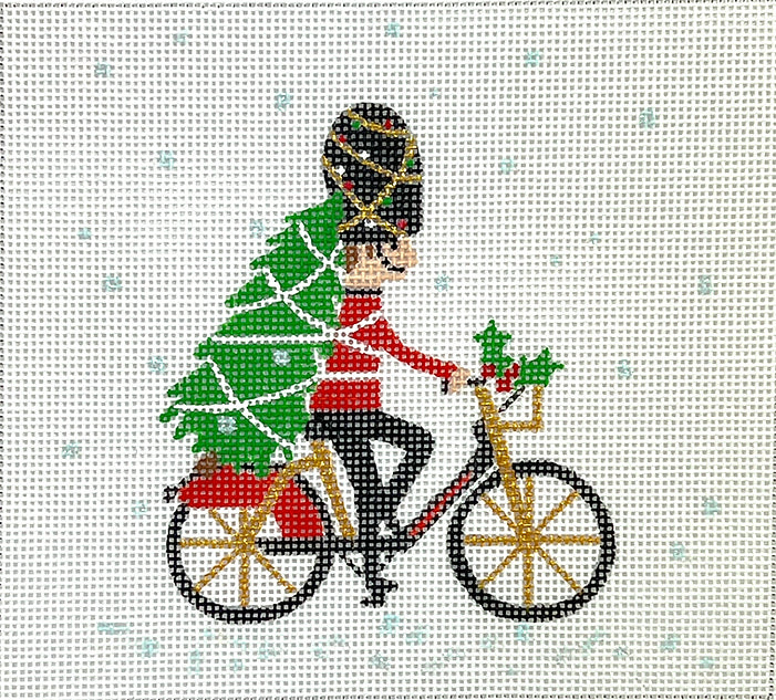 Kate Dickerson Needlepoint Collections Klara Hawkins London Christmas Guardsman on Bike Needlepoint Canvas