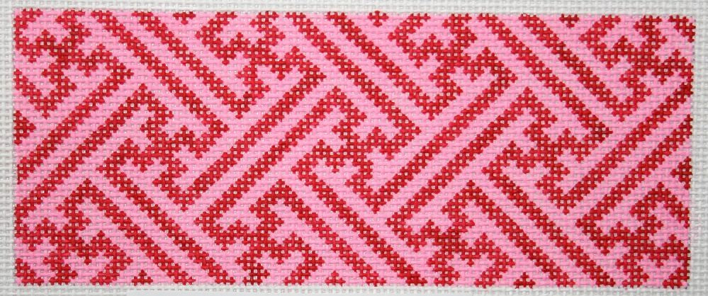 Kate Dickerson Needlepoint Collections Insert - Chinoiserie Lattice - Red & Pink Needlepoint Canvas - 5.5 x 2