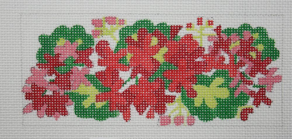 Kate Dickerson Needlepoint Collections Insert - Geraniums - Red & Greens Needlepoint Canvas - 5.5 x 2