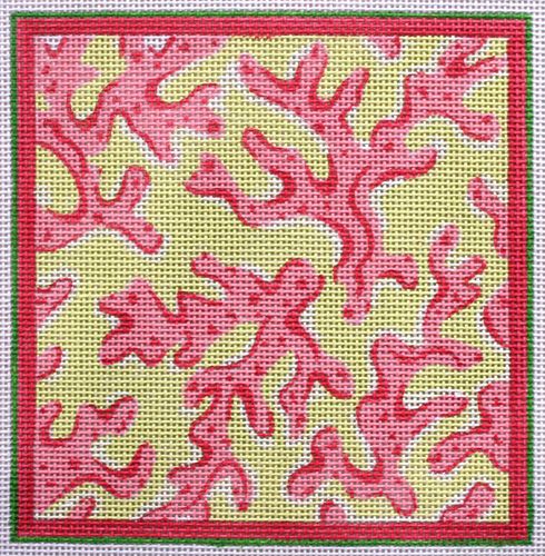 Kate Dickerson Needlepoint Collections Lilly Letter - Sea Coral - Pinks on Greens Needlepoint Canvas