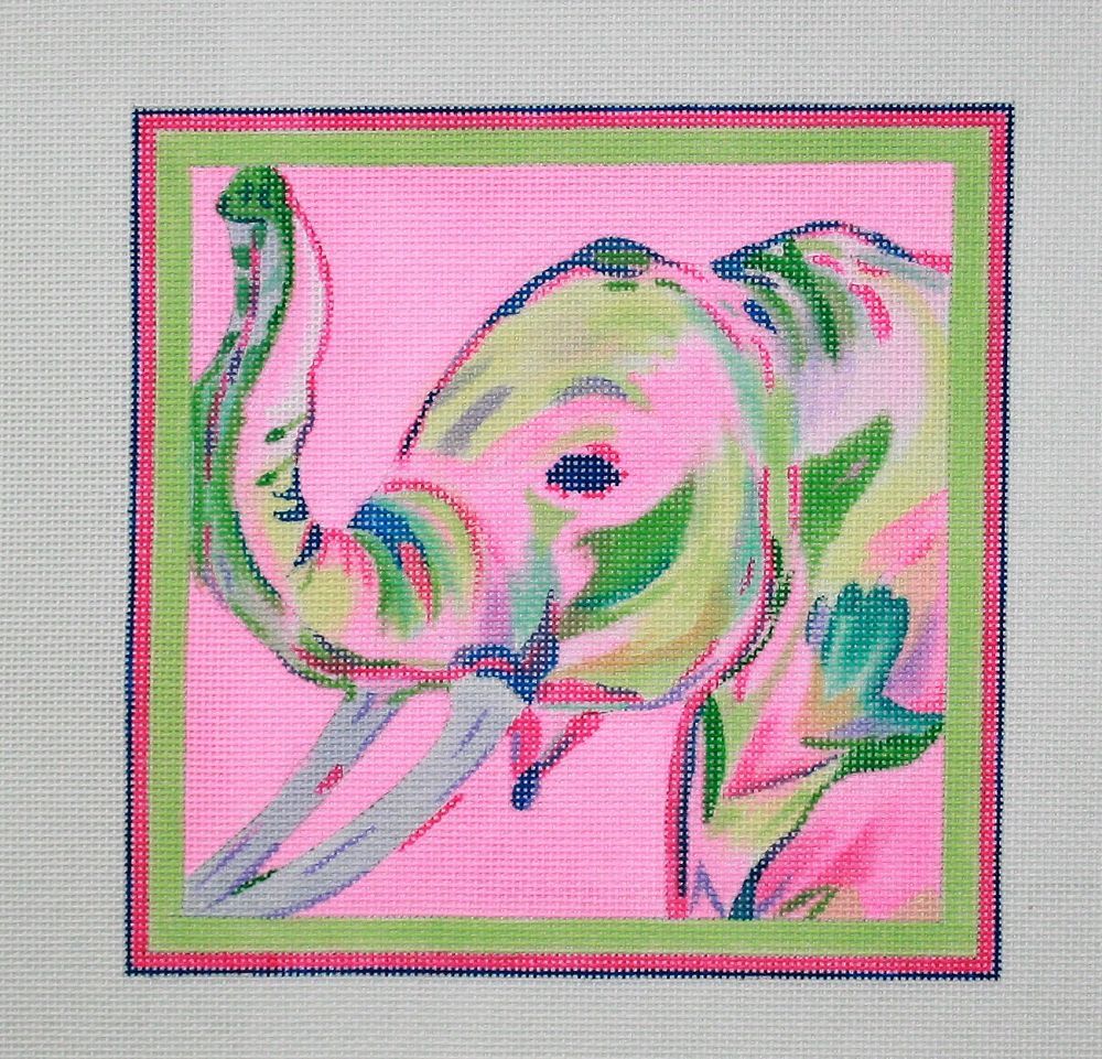 Kate Dickerson Needlepoint Collections Megan Carn - Elephant - Pink Multi on Bright Pink Needlepoint Canvas