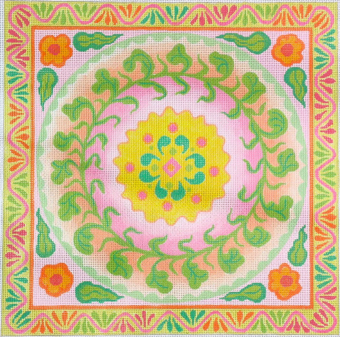 Kate Dickerson Needlepoint Collections Mexican Embroidery Style Circle In A Square Summer Melons Palette Needlepoint Canvas